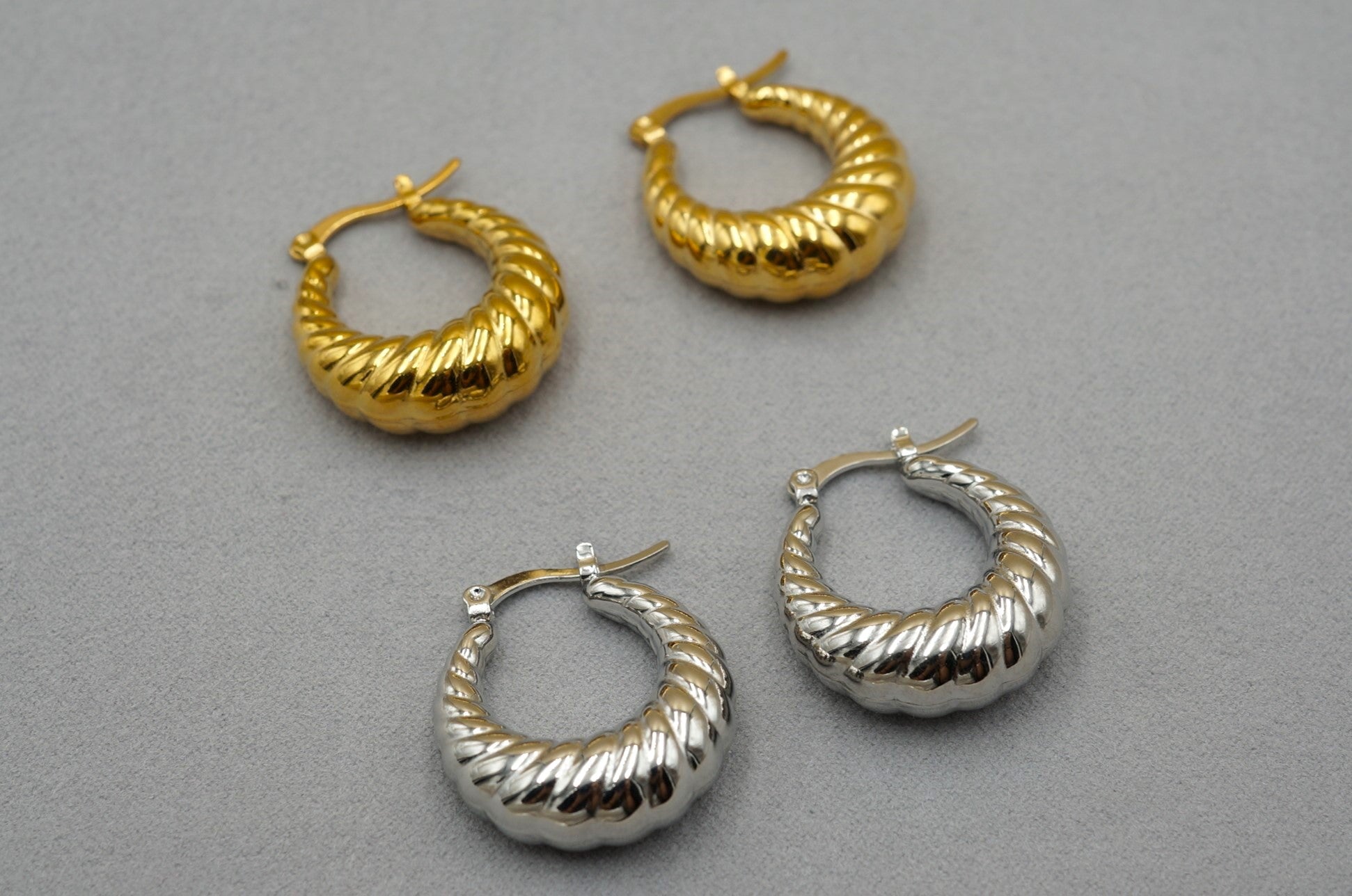 Gli orecchini sono realizzati in acciaio inossidabile di ottima qualità e sono ipoallergenici, assicurando un prodotto resistente che non causa allergie.